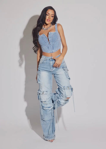 Pearl Accent High Rise Cargo Jeans