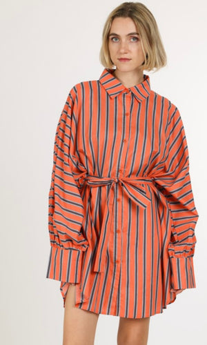 Orange Contrast Striped Midi Shirt Dress