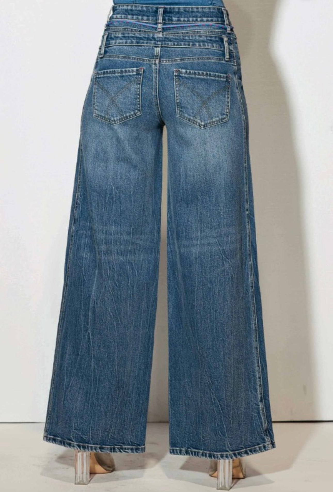 5-Pocket, Medium Stone, Wide Leg Jeans with Drawstring!