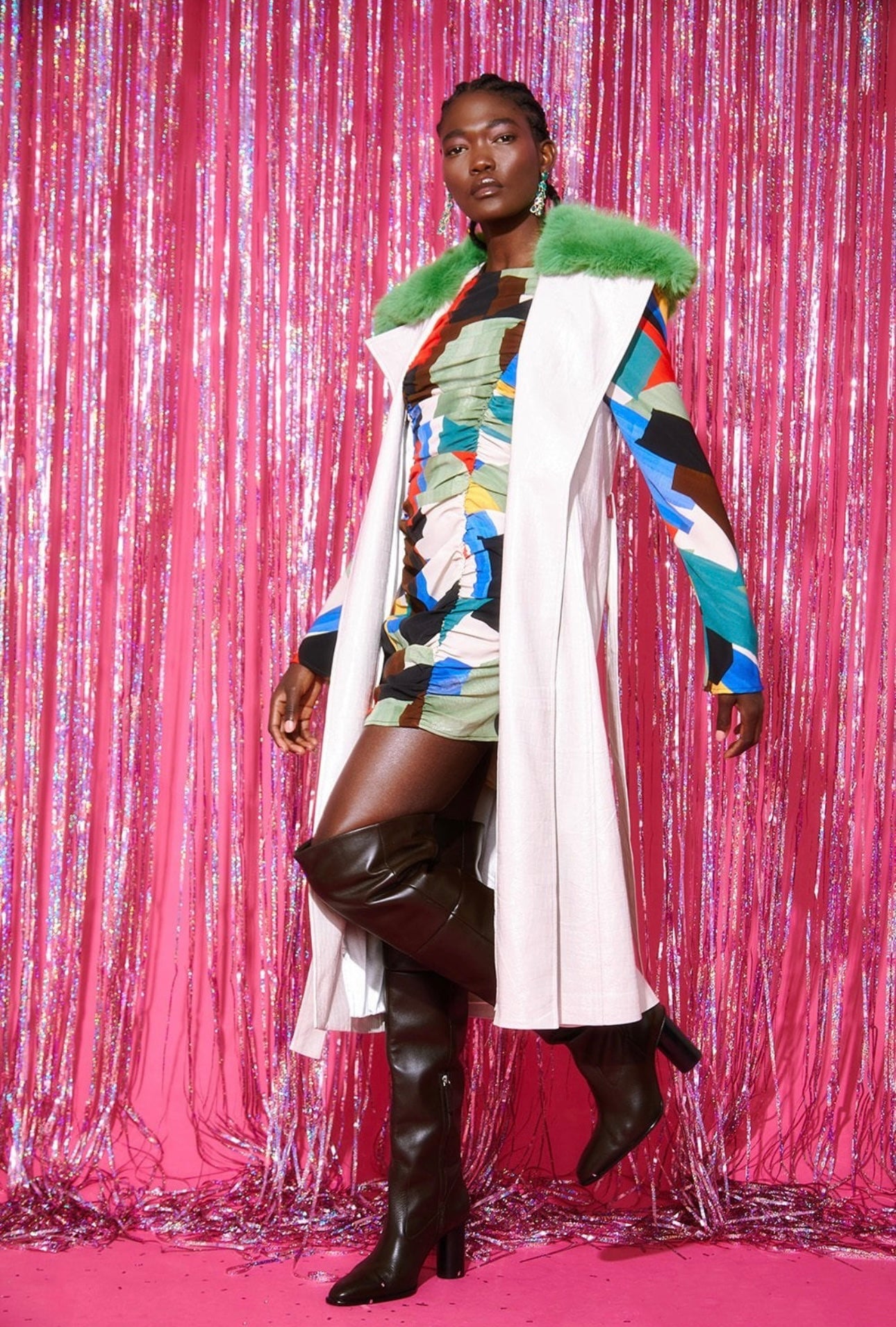 Step into the spotlight with our White Faux Leather Vest, a bold fusion of chic and edgy! This stunning piece features a removable green faux fur collar, letting you play with styles and moods effortlessly. Perfect for layering over your favorite outfits or making a statement on its own, this vest is designed for those who dare to stand out. Embrace your unique style and transform your look with this versatile wardrobe essential!