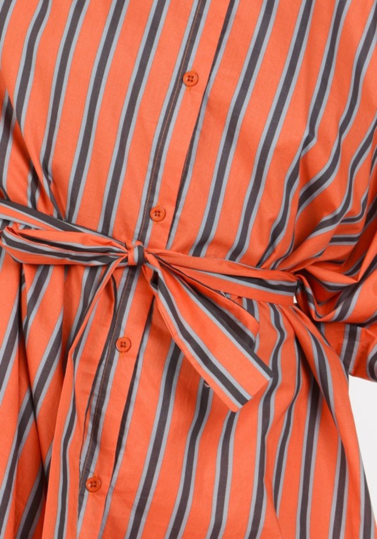 • Load image into Gallery viewer, Orange Contrast Striped Midi Shirt Dress
