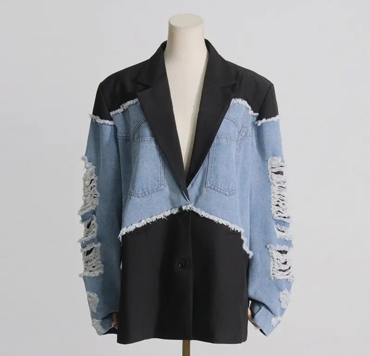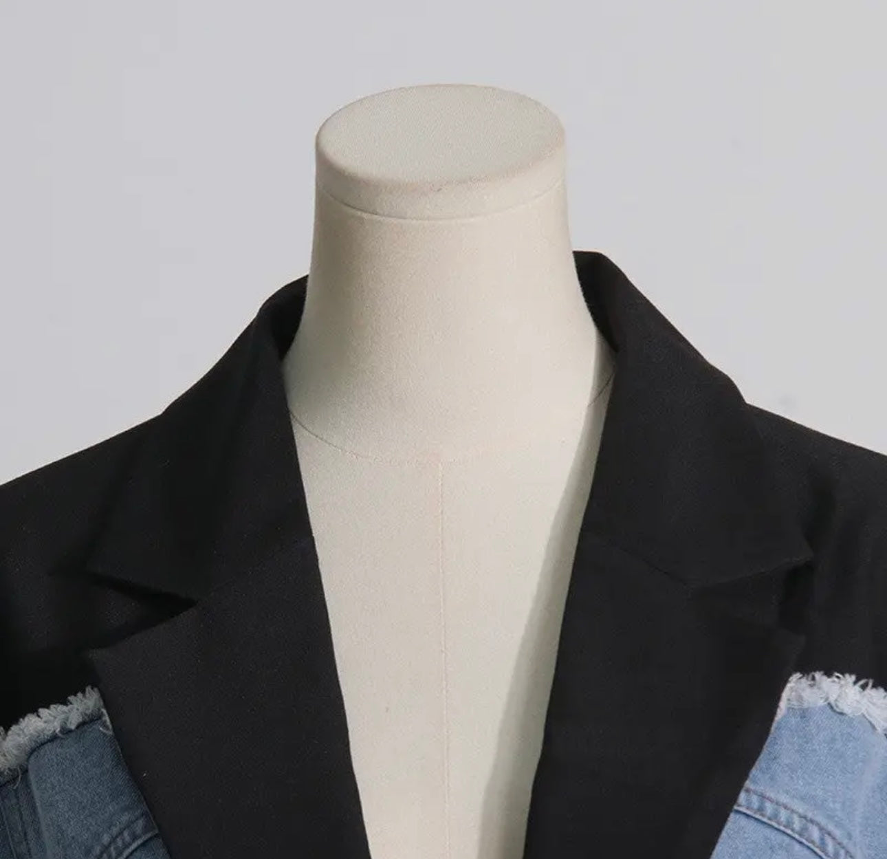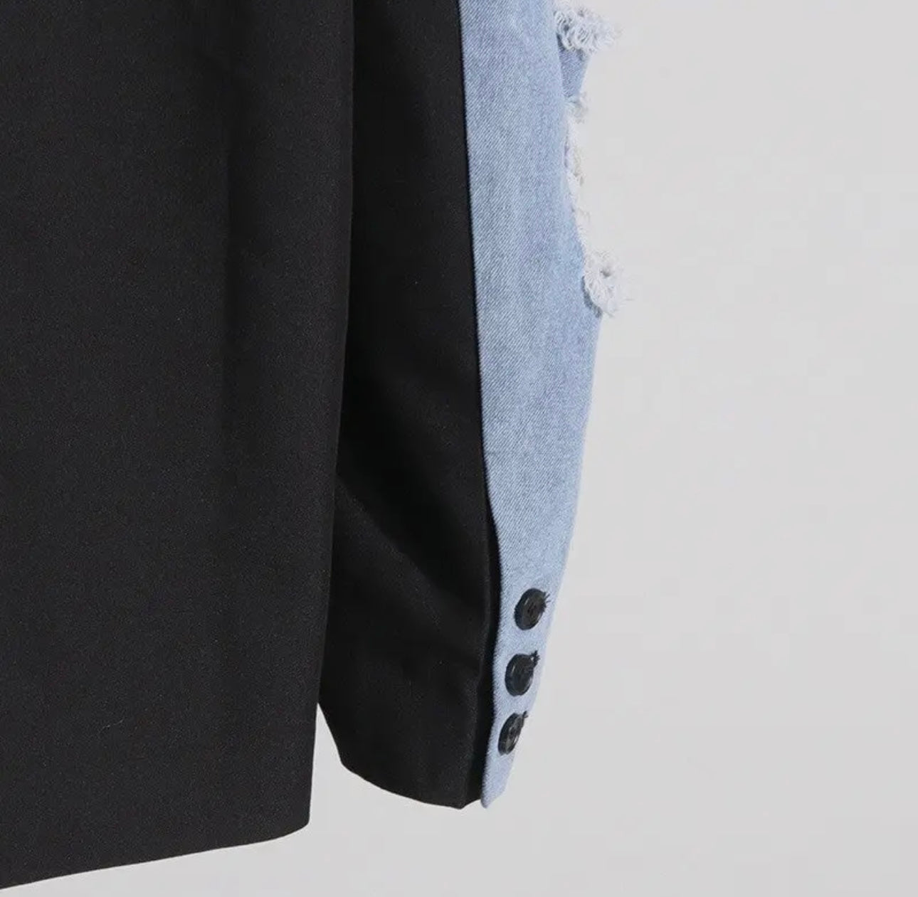 • Load image into Gallery viewer, Oversized Denim Patchwork Blazer