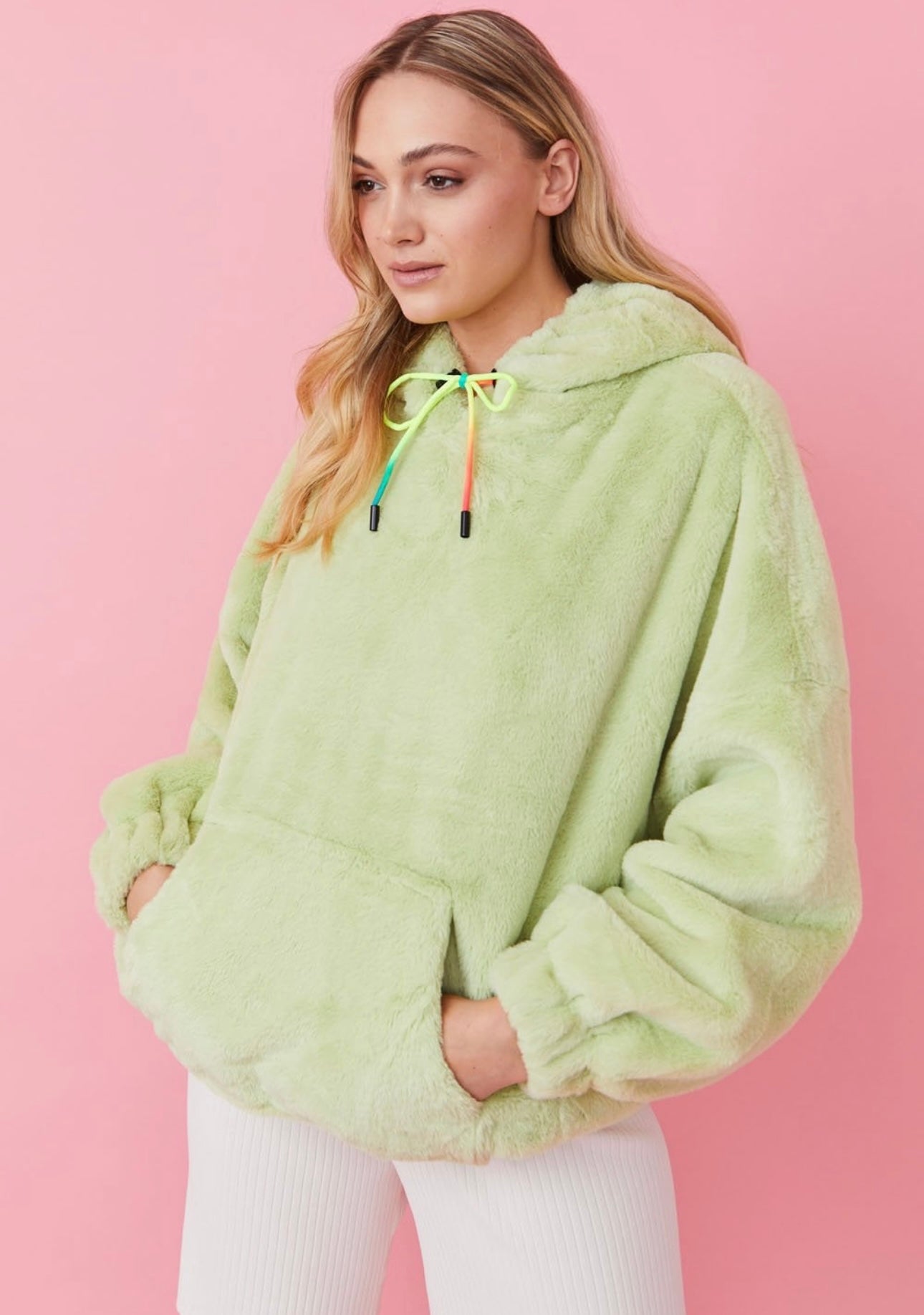 Oversized Faux Fur Hoodie (Orange, Green, Yellow, Light Blue)