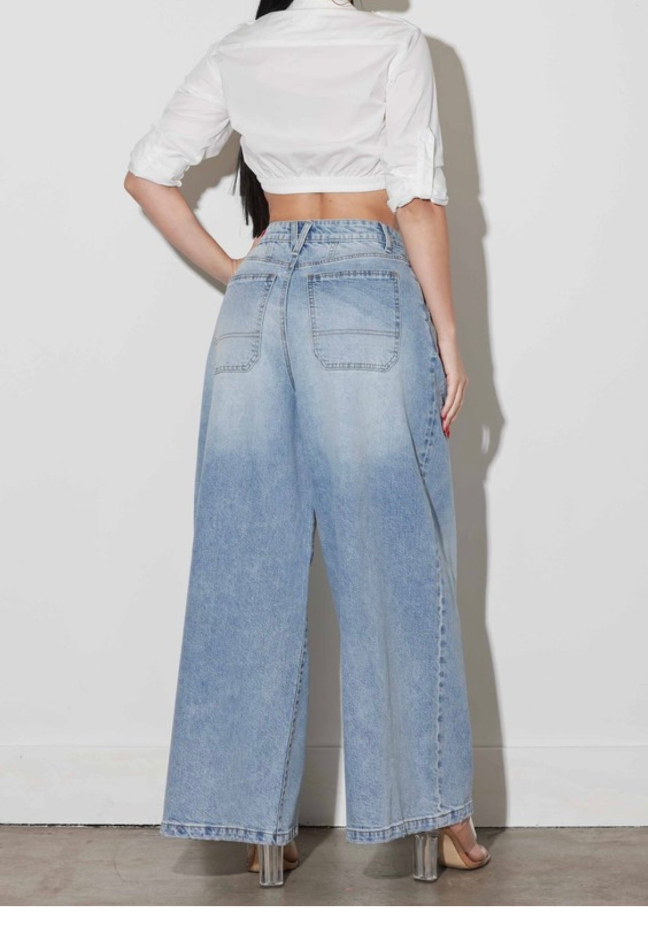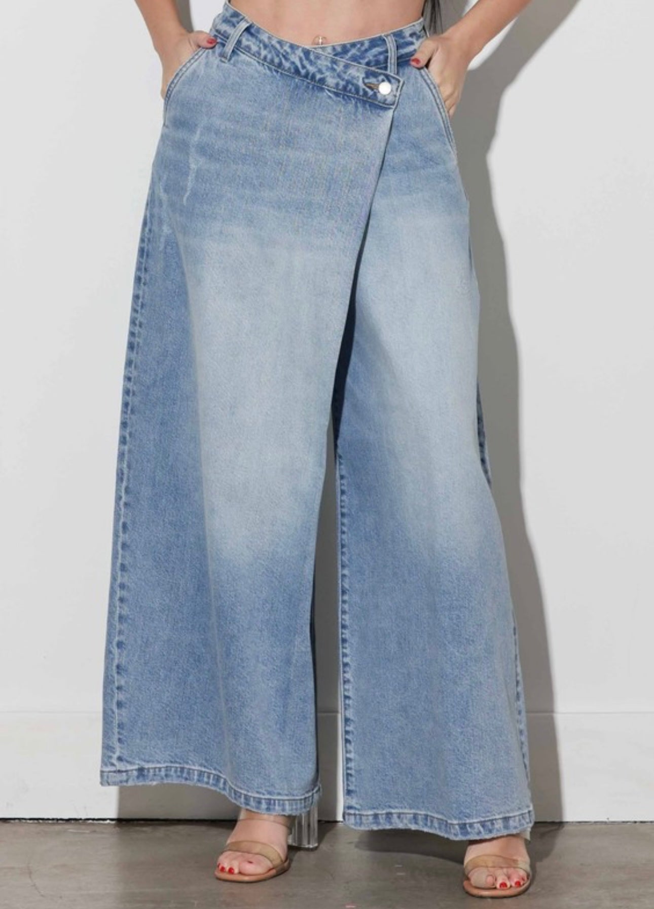 Wrap Front Wide Leg Jeans